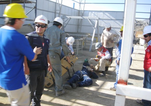Se simuló una caída en altura desde aproximadamente 6 metros, ocurrida en el taller mantención planta, con la consecuencia que un trabajador quedó gravemente herido.