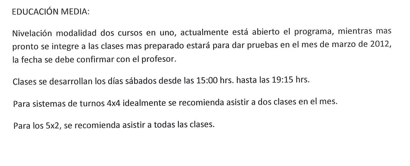 *Se considerarán los certificados de educación de adultos, independientemente de la nota obtenida.