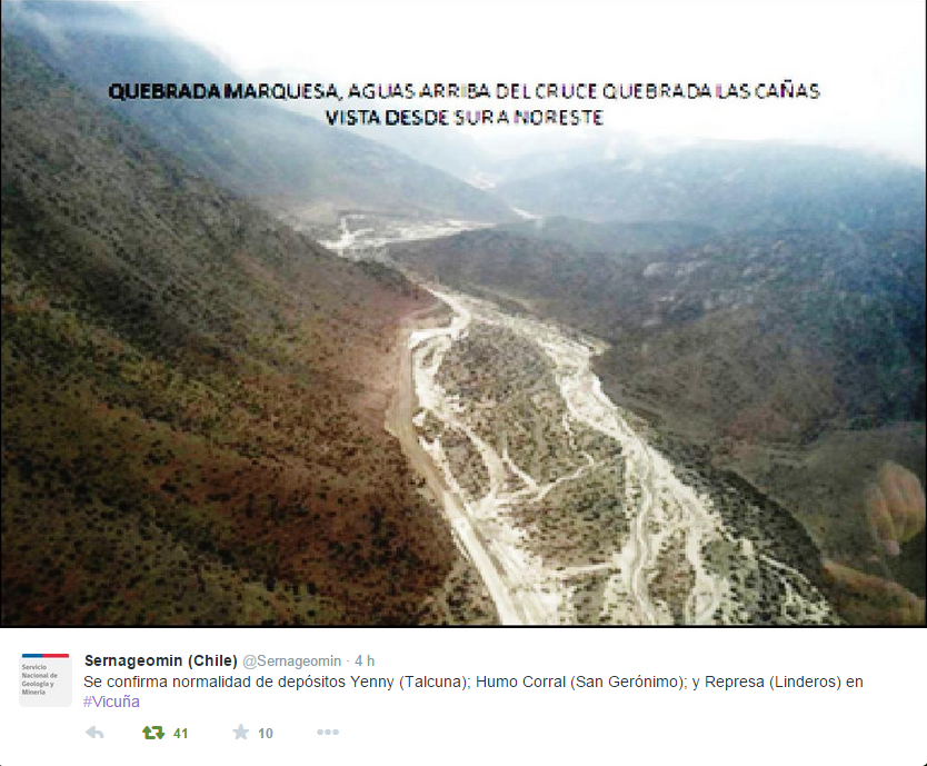 A través de su gerente general, Juan Carlos Sáez, Minera San Gerónimo manifestó que “los tranques de relaves, tanto operativos como en fase de cierre, soportaron la anomalía climática, a través del funcionamiento de sus canales de contorno, como de los sistemas de evacuación y manejo de aguas internas y pretiles de contención, situación que fue verificada en terreno por la DGA y la DOH”.