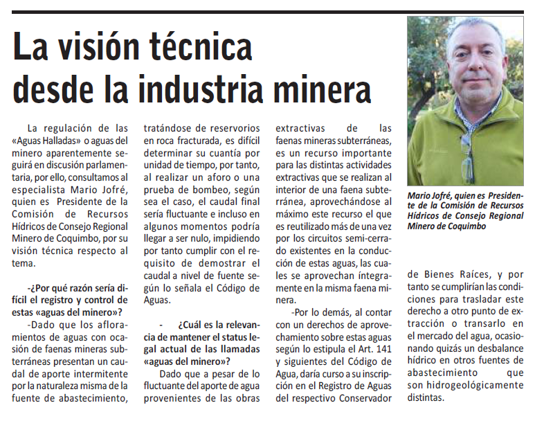 Al margen del tema controversial, compartimos extracto con la visión Técnica desde la Industria Minera de nuestra región de Coquimbo en conocimiento de que este tema continuará en discusión parlamentaria: