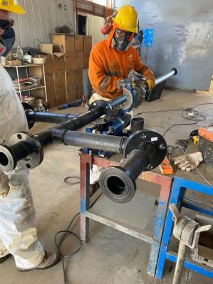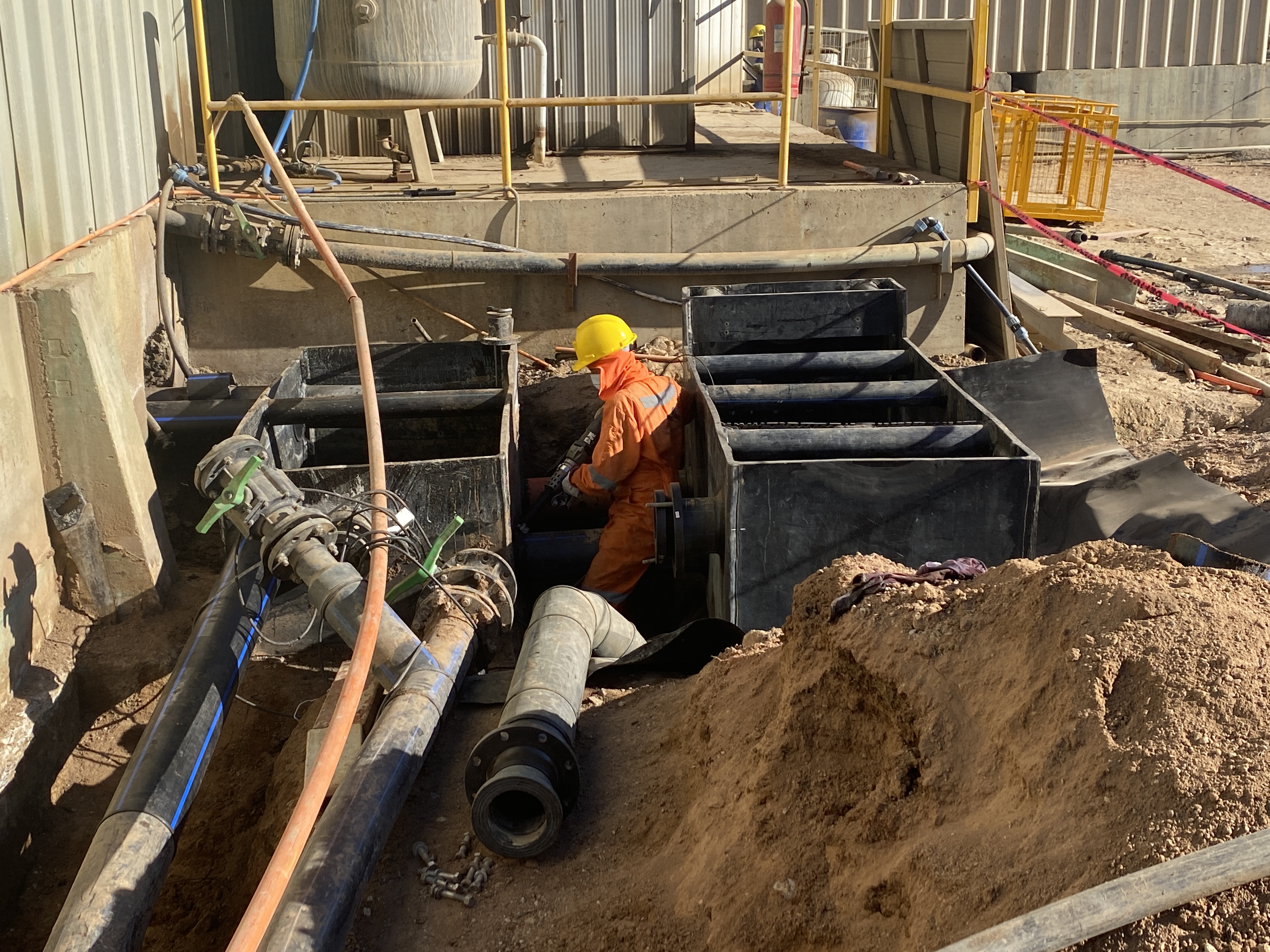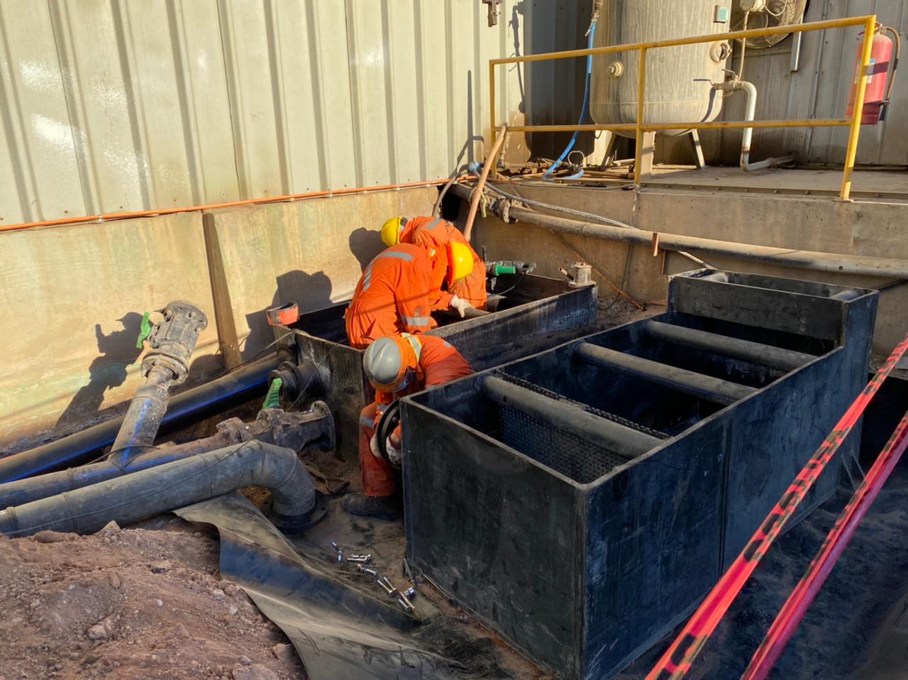 Respecto a los trabajos mecánicos, se desarrollaron tareas de soldadura HDPE y se instaló un nuevo cajón que permitirá aumentar la capacidad y mejorar la descarga de refino. Además, se ajustó y dio pendiente al piping de los post decantadores; se realizó mantenimiento completo a los equipos E; cambios de válvulas, piping y se revisaron los sistemas de agitación y los dobles fondos.