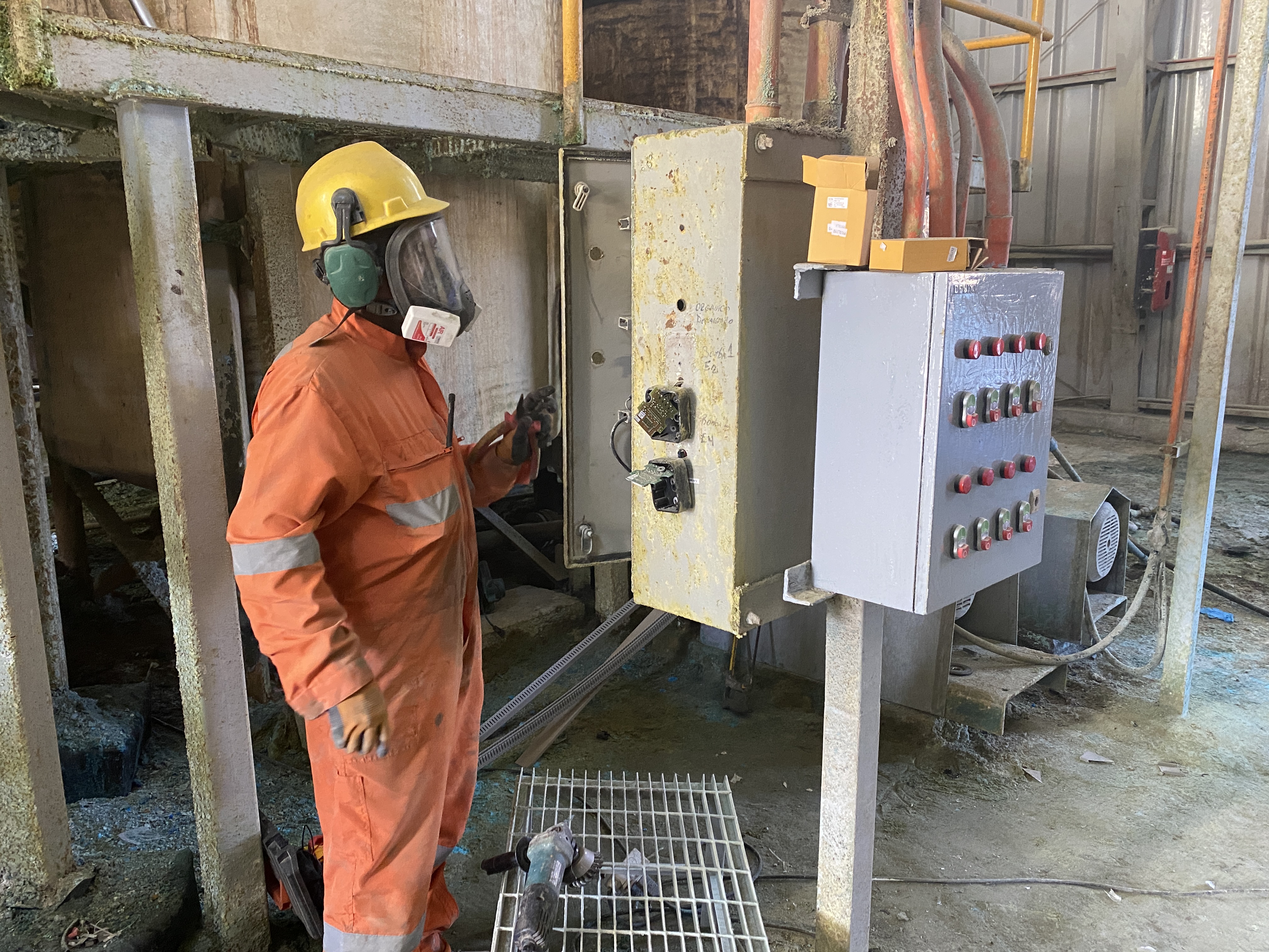 De esta forma y además del mantenimiento integral a la línea de media tensión, se efectuó una completa revisión, que incluyó: cambios de aisladores, crucetas y limpieza de paño de todas las estructuras. Dentro de la nave se trabajó en los tableros del área de extracción por solventes; se revisaron los motores de los sistemas de agitación de los equipos E y cristalización.