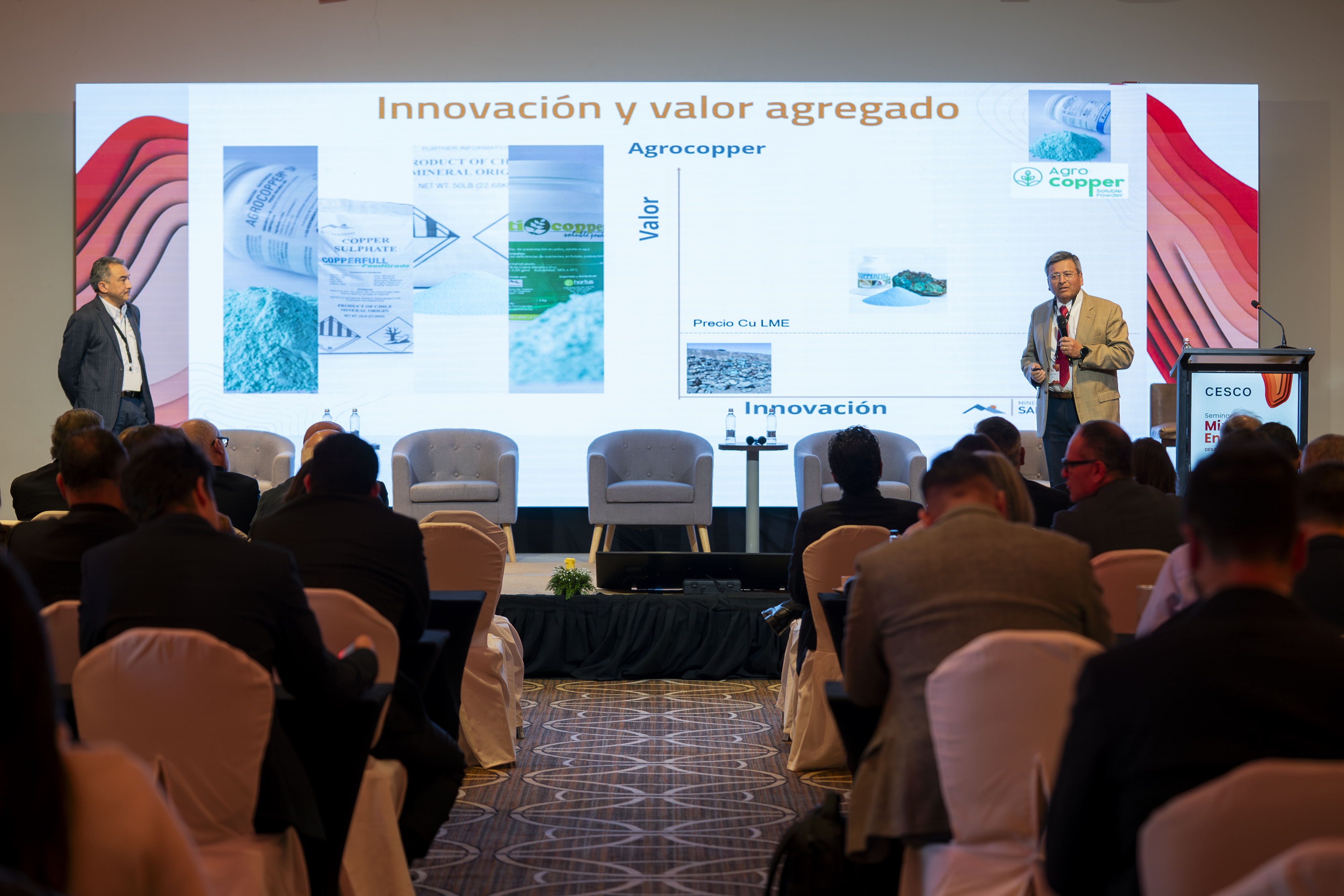 En la oportunidad, Enzo Martínez Romero, gerente Operaciones Plantas y Proyectos, expuso el trabajo desarrollado junto a Ceibo, que permitió poner en marcha una planta piloto para la lixiviación de sulfuros, la que, a pocos meses de su instalación, ya produce sus primeros cátodos de cobre.