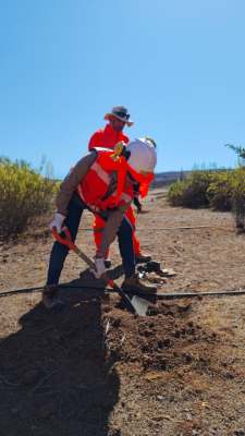 Tras una charla técnica liderada por el ingeniero medio ambiente, Flavio Alanis Véliz, y la respectiva inducción de seguridad, quienes participaron se pusieron manos a la obra. En esta ocasión, el esfuerzo se concentró en la plantación de Rumpiatos, una especie nativa resistente a condiciones áridas, fundamental para la recuperación de suelos.